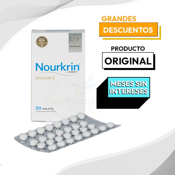 Marilex (extracto de pescado fraccionado con proteoglicanos lectican específicos) 315 mg, gluconato cúprico (cobre) 1 mg, D-biotina 180 µg.Nourkrin Radiance.