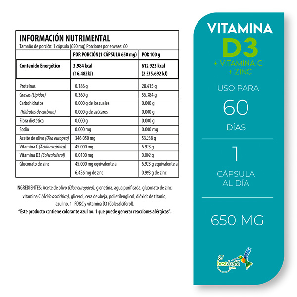 | Vitamina D3 con vitamina C y Zinc 60 cápsulas Best Health | Envíos Gratis 😍 + Meses sin Intereses + Kueski Pay y Aplazo | ✅ Tenemos Grandes Ofertas |